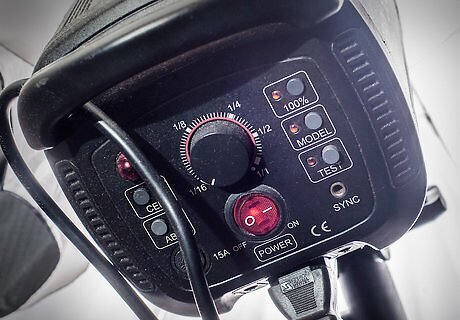 Choose a setting on your flash. If you know the camera's output to be fairly strong, set it for 1/2 power. If not, set it for full power. You can always reset it later.
