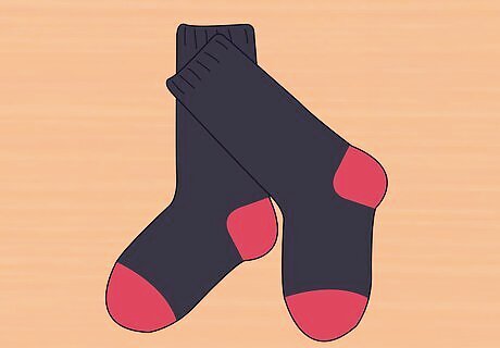 Pack socks. Pack cotton crew athletic socks that are appropriate for your athletic shoes in terms of thickness. Avoid low cut socks, as they don't protect your heels when walking long distances. Stuff the socks into the shoes so as to conserve space and keep your footgear together. Women who wear skirts and dresses may benefit from packing knee high athletic socks to provide additional coverage for the legs.