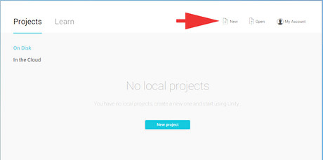 Start a new project by clicking "New" on the Unity Projects tab.