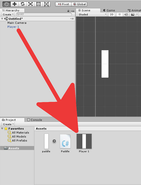 Create Player 2 by making the current player into what is called a Prefab. To do this you're going to select it in the scene, and drag it down to the asset panel. This will create the prefab.