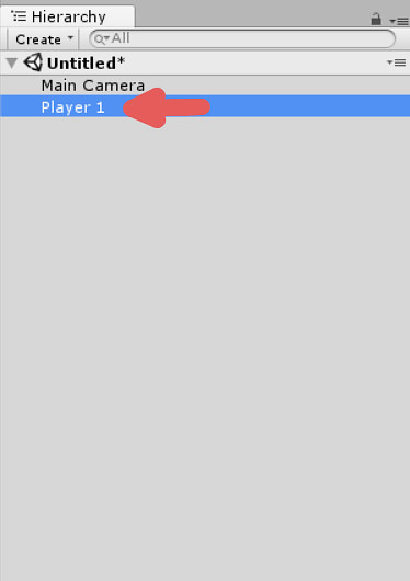 Select the Player 1 Game Object in the scene by clicking on it inside of the hierarchy.
