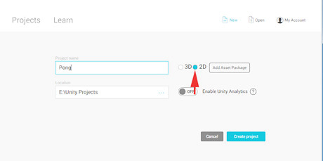 Name the project, and ensure the box "2D" is checked. Then click the "Create Project" button in the bottom right corner.