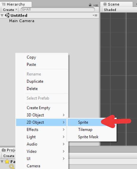 Right click in the hierarchy, and create a sprite. Rename this sprite to "Ball".