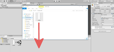 Import the sprite into the asset folder. Find where the image has been saved on your computer, and drag it from that folder into the asset folder inside of the Unity Editor.