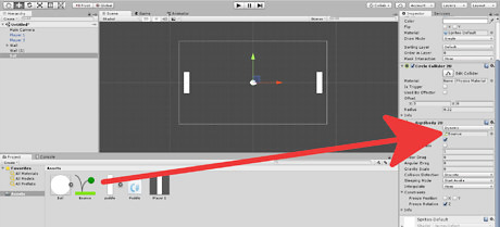 Click the "Constraints" drop down menu, and then check "Freeze Position" for the x value, and "Freeze Rotation" for the z value. This ensures the Paddle will only move in the Y axis, or simply will only move up and down.