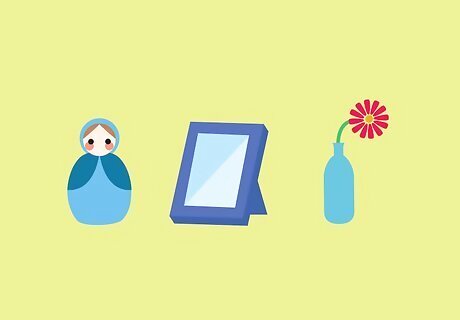 Bring in knick knacks from home. Decorating your desk or a shelf with small trinkets, figurines, toys, puzzles, etc. can be a great way to customize your cubicle while taking up minimal space. Anything you like to look at that isn't too distracting will qualify, just as long as it doesn't take up too much space. Don't put any items in your cubicle that are exceptionally expensive. Cubicles are easily accessible to others; prevent the likelihood of theft by limiting your knick knacks to things you enjoy but that are not highly valuable. Don't bring in items that you will want to have or use while at home, such as your favorite 3D puzzle or a figurine that is part of a larger set. The same logic applies here as to the coffee mug; it's easier to have your things assigned either to home or work.