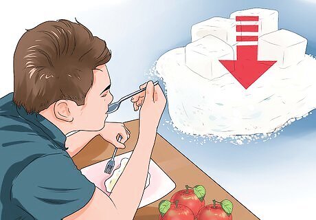 Be conscientious with your diet. Limit sugar and refined carbohydrates (such as white bread, pasta, and white rice) as these contribute to worse acne. The American Journal of Nutrition published a study showing that whole grains, beans, and veggies are better food choices for people with acne. Also, drinking plenty of water throughout the day to stay well-hydrated (at least 8 cups per day, and more with exercise) can help to improve acne.
