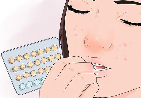 Try the birth control pill if you are a female who struggles with acne and sensitive skin. Any birth control pill that contains estrogen and progesterone will reduce and improve acne, although certain pills may work better for some women than others. Also, given that it is taken as a pill (rather than applied directly to the skin), it is an excellent choice for girls and women with sensitive skin. The birth control pill provides the added benefit of contraception and reducing menstrual cramping and bleeding, if this is something you are looking for as well. Pills with more estrogen (each type of pill has varying amounts of estrogen and progesterone) tend to be more effective with acne, but they also carry more risk, so talk to your doctor about these options. Always talk to your doctor first as certain pills and IUDs can actually worsen acne (those with less estrogen). All birth control pills have some level of risk, which is higher if you are a woman who smokes, is overweight, or has certain other medical problems.