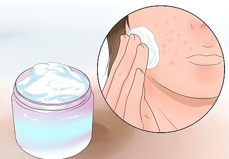 Try a moisturizing cream. Many acne treatments can result in drier skin, so especially for those with sensitive skin, regular moisturizing is an important preventative measure to avoid your skin becoming overly irritated with acne treatments. When picking a moisturizing cream from the drug store or pharmacy, look for one that is labeled "hypoallergenic" (for sensitive skin) and "non-comedogenic" (suitable for people with acne, meaning that it won't contribute to worsening your acne).