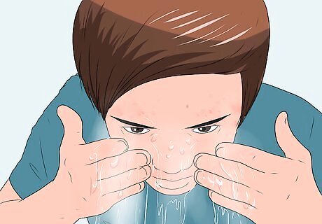 Start by washing your face (and any other areas with acne) twice a day, once in the morning and once in the evening. Use something mild like Dove Unscented Soap, or a specific mild acne cleansing agent from the pharmacy or that your doctor recommends. Washing your face (and any other areas with acne) is important to diminish the oil on the skin. However, you want to be careful to use mild cleansing agents to not dry out your skin too much, since you already have sensitive skin. If you are choosing an acne product from the pharmacy, look for something where the label says "hypoallergenic," or ask the pharmacist there for recommendations for sensitive skin. Use warm water (not hot) for washing as this tends to be less irritating to the skin. Also do not pick or pop pimples as this can lead to scarring, infection, and/or worsening of your acne.