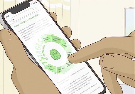 Understand the disease and stages of progression. Look on the Internet or at the library. Find local organizations that offer Alzheimer's education. It will be difficult to face some facts, but you need to know what to expect. There are 7 described stages to the progression of Alzheimer's disease. Many patients are not diagnosed until they have reached stage 4. Determine which stage the person is in, and what the symptoms are now and as the disease progresses.