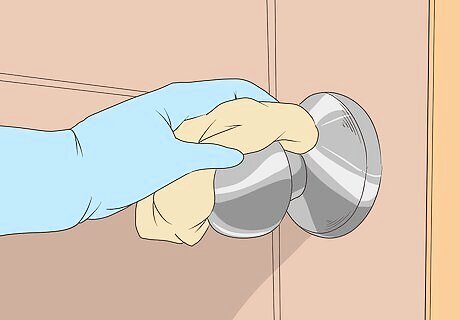 Clean surfaces that get touched a lot, like doorknobs and countertops. Your home can collect a lot of bacteria that you touch with your bare hands. Surfaces like doorknobs, countertops, and sink handles are touched by a lot of people who carry a lot of different germs. Wipe down these surfaces with a bleach cleaning spray once a day to make sure bacteria and viruses don’t stick around. Bleach cleaning spray can be found at most grocery and home goods stores.