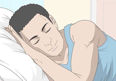 Get a good amount of sleep every night to keep your immune system healthy. Sleeping gives your body time to repair and rest, and it's an important part of staying healthy. Aim to get at least 7-8 hours of sleep each night in a dark, quiet, and cool room. If you start feeling ill, then lie down and try to fall asleep earlier than normal so your immune system can fight off the infection. If you live in a loud environment, try wearing earplugs or using a white noise machine to block out the other sounds. Cover windows with dark curtains or wear an eyemask so you aren't kept awake by light throughout the night.