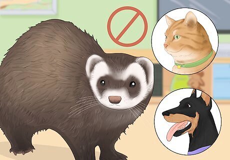 Consider your other pets. Ferrets generally do best in a home without other pets. Cats and dogs are often aggressive with ferrets. Ferrets will pray on smaller animals, like mice and rats. If you already have pets, a ferret may not be your best option. Some people do keep ferrets with smaller dogs or cats. If you decide to get a ferret despite having a dog or cat, only allow supervised interaction. Even during play, a dog or cat could accidentally harm a ferret.