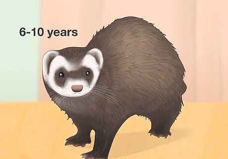 Remember a ferret's lifespan. This is especially important if you're purchasing a younger ferret. Ferrets don't live as long as some pets, like smaller dogs and cats, but their lifespan is not brief. Ferrets live between 6 to 10 years. You do not want to adopt a ferret if you will potentially have to give it up in a few years. Think about the stability of your living situation. If you're going to be moving from year to year, it can be difficult to find places that allow ferrets. Unlike dogs and cats, there may be specific rules against ferrets or similar animals in certain places due to their odor. Consider other factors. Are you going to start a new career, finish a school program, travel, or make any other big changes? If so, it may be difficult to keep your ferret in the long term. If you want a ferret, but worry your life is too unsettled, you can always consider adopting an older ferret rather than a baby.