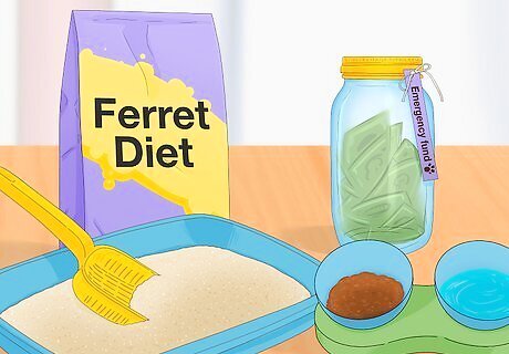 Weigh in other general costs of care. Between the cage, accessories, food, treats, toys, litter, and other items, your ferret could cost a large amount of money upfront. Make a list of all the things you will need to buy and add up the total cost. This will give you a sense of whether you can truly afford a ferret in the present moment. You should also have some extra money in case of unexpected circumstances. A ferret could, for example, contract a cold from a pet store or shelter. You will need extra money for vet bills.