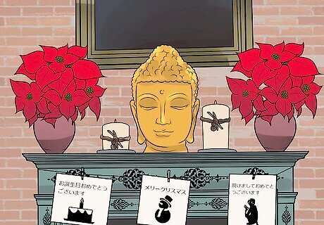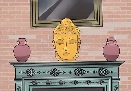 Add some personal trinkets, knickknacks, and souvenirs. It can be as simple as a pretty rock or shell you found at the beach, or as complex as an antique doll. These personal items can also be spiritual, such as a statue of an angel, the Virgin Mary, or Buddha. They can also be related to your interests. For example, if you like sailing, consider putting up a model of a sailboat.