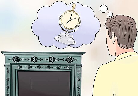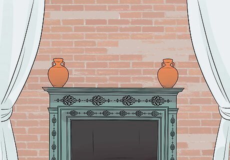 Work with the theme of your room. While the fireplace might not be suited to the theme of the space, you can choose objects to out on the mantel that fit with the theme. This will help tie the mantel into your room, and make it look as though it is part of the overall decor. If you use too much contrast, the mantel will stand out too much. Take note of the materials the things in your room are made out of, as well as their shapes and designs. If your room has a lot of antique items in it, you may want to place some antique items on your mantel as well. If your room has a specific theme to it, such as nautical, consider adding some items that match — such as a piece of rope tied into a sailor's knot, a model of a boat, and a lifesaver.