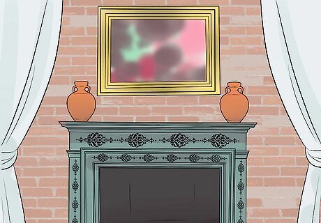 Make a focal point with one piece of artwork. Choose a large piece of art that complements the style of the room. Match the art to the scale of the mantel. This makes a great statement piece and adds visual interest to the space. If the art isn't heavy enough to stand/lean on its own, be sure to secure it so it doesn't fall.