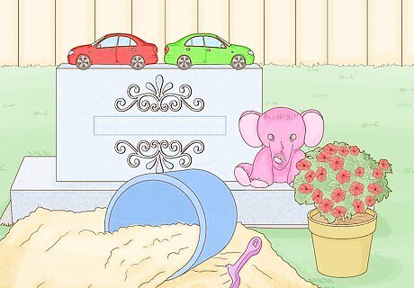 Consider art. You can use art to decorate your loved one's grave site. For instance, try small saint statues or painted stones. Just remember that anything you use should be weatherproof, including sun-proof; if art isn't made for outdoors, the colors will fade quickly.