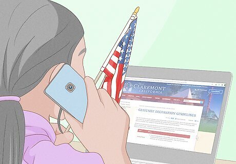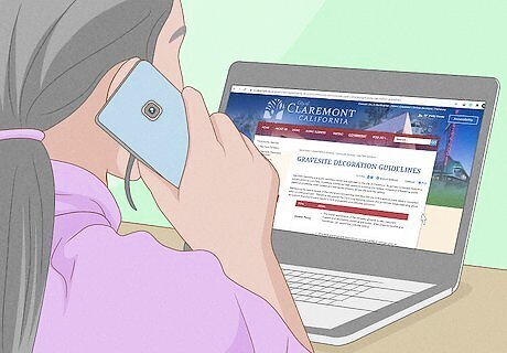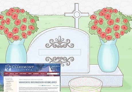 Contact the cemetery. Most cemeteries these days have websites with the grave site decorating rules listed; if the one you're visiting does not, you'll need to call the office or city in charge of the cemetery. Every cemetery has different rules for decorating grave sites, and you need to know what rules apply before you decorate.