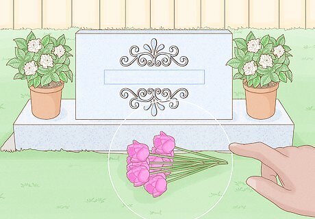 Think about the season. For instance, in fall, you may want to place several small pumpkins on the grave site. Near Christmas, you may want to add poinsettias or a small wreath made of evergreens. In other words, you may want to decorate the grave site periodically, updating it by what's available for the current season or upcoming holiday.