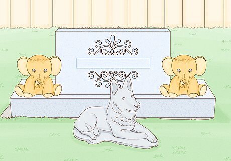 Place small stuffed animals. If your loved one had a favorite animal, think about a small stuffed animal. Alternatively, you can use a small animal made out of stone for a more permanent option.