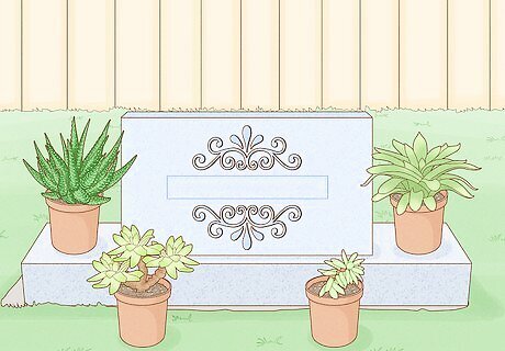 Pick the best floral option for the time of year. When fresh flowers are available, especially in the spring and summer, most cemeteries would prefer that you bring fresh flowers. However, if you want something else, consider a small flowering shrub, which will continue to bring beauty to the grave site for many years. If you want a flowering shrub or flowers, pick something small, native, and easy to maintain. Check with a local nursery to ask what would be best for your area. Also, ask about how often you need to prune the bush. For instance, in a very dry, hot area, you may want to consider a succulent or pretty blooming cactus. Some people use flowers such as chrysanthemums and geraniums because they don't take as much effort to maintain as other flowers.