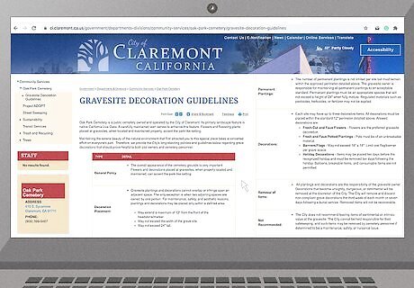 Look for information about holiday decorations. Some cemeteries allow you to place holiday-related decorations. However, you'll usually have to place them and remove them within a certain time frame.