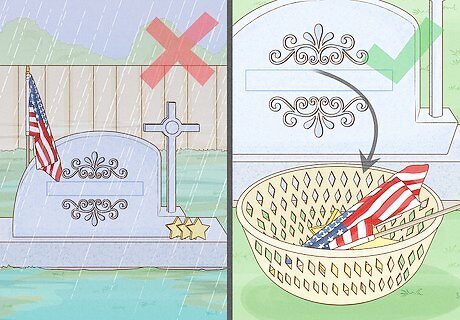 Honor veterans with flags. If your loved one was a veteran, consider adding a small flag to the grave site. You could also use a small stone painted with a flag or the emblem of the branch the person was in.