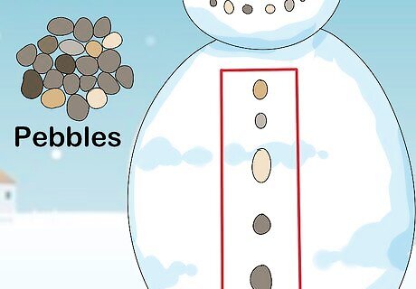 Add coat buttons. Push a line of pebbles into the snowman, right down the front.