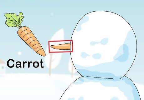 Add the nose. The traditional option is to use a carrot for the nose. Alternatively, you could use a fake nose from a costume store or anything from the recycling bin. Even a small pine cone could work.