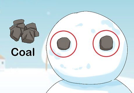 Create the eyes. Traditional choices for the eyes include small pebbles, pieces of coal, or even charcoal briquettes. Alternate options could be buttons, plastic lids, or really anything that you may find in the recycling bin! Once selected, place these items where the eyes should be.