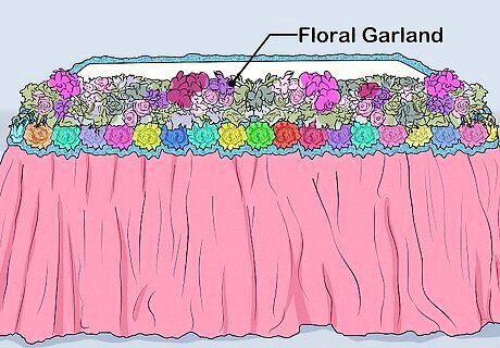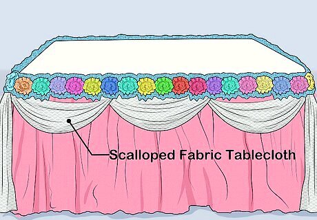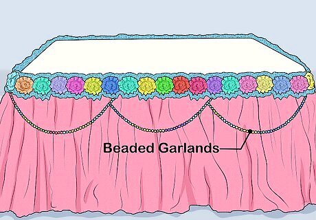 Use beaded garlands instead of fabric as an alternative. Wrap a beaded pearl garland around the top edge of your table. Safety pin it at each corner and every 12 to 24 inches (30 to 61 cm). Let the garland droop a little between each pin to create a scalloped look. You can do this in addition to fabric scallops for an even fancier look. Make the beaded scallops droop lower than the fabric ones.