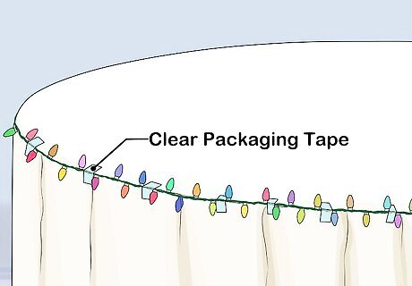 Secure the lights to the table with clear packaging tape. Starting at a table corner, begin wrapping the lights around the tabletop’s edge. Secure the wire to the tablecloth with clear packaging tape every 6 to 12 inches (15 to 30 cm) so that it doesn't slide off. If you are using regular string lights, droop the wire by 6 to 12 inches (15 to 30 cm) so that you cover more surface area. If you don't, the top of the tutu will cover them. If you are using battery-operated lights, strap the battery pack to the bottom of the table leg, just below the tablecloth. Don't turn them on yet to save battery power. If you are using plug-in lights, make sure that there is an outlet nearby. You don’t have to plug them in yet.