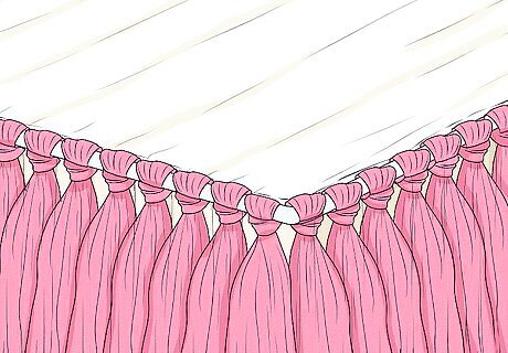 Continue to tie the tulle strips around the table until the elastic is full. Make sure that the knots are touching each other. If you leave too much space between the knots, your table tutu won't be very full. If you run out of strips, cut some more. If the table will be against a wall, you only need to cover the sides that will be visible. If a pin gets in the way, you may need to move it.