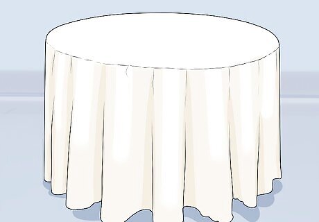 Choose a solid-colored tablecloth to use as your base. Even though you’ll be adding tulle, you still want something on your table to cover the top and sides. You can use a fabric tablecloth or a plastic one, but it needs to be solid-colored. The color can match the tulle that you will be using, or it can coordinate with it. For example, you can use a white tablecloth with white tulle, or you can pair a white tablecloth with pink tulle. Match the tablecloth shape to the table. Use a round tablecloth for a round table, and a rectangular tablecloth for a rectangular table. Make sure that the tablecloth is big enough to reach the floor. If you need to, use 2 or more tablecloths.