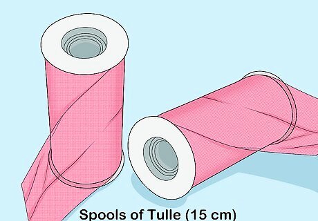 Purchase some spools of tulle. They are about 6 inches (15 cm) wide, and you can find them near the ribbon or wedding section of a craft or fabric store. If you can't find any, buy regular tulle off the bolt at a fabric store, then cut it into 6 in (15 cm) wide strips. Plan on getting 2 to 3 spools that are 100 yards (91 m) each. You can use all 1 color, or you can use multiple colors for a more interesting effect. For example, you can use light pink and dark pink instead of just light pink. Try a rainbow of colors: pink, orange, pastel yellow, mint green, pale blue, and light purple. For a more magical display, consider using sparkly or glittery tulle.