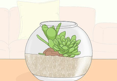 Turn the vase into a terrarium by filling it with soil and plants. Place soil at the bottom of the vase, adding a thicker layer of soil if your vase is tall. Place small succulents, real or fake, in the soil to use the vase as a display for your plants. This works especially well for wider vases. If you use real plants, place the vase near sunlight and remember to water it occasionally.