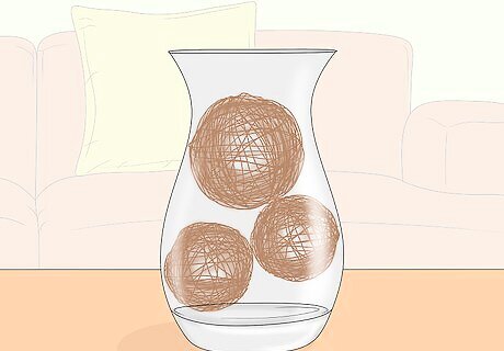 Stack grapevine balls in a glass vase for a quick decoration. Pick out small grapevine balls to fill the vase with lots of them, or select 3 or 4 larger balls to place in your vase. Stack the grapevine balls on top of one another in the vase for a simple and easy decorated vase. String lights through the balls to add light to your vase, or consider spray painting the grapevine balls to make them a certain color.