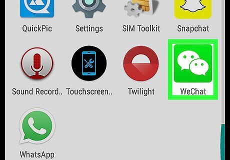 Open the WeChat app on your Android. The WeChat icon looks like two white speech bubbles in a green box on your Apps list. WeChat will open up to a list of your recent chats. If WeChat opens up to a chat conversation, tap the back button to go back to your chats list.