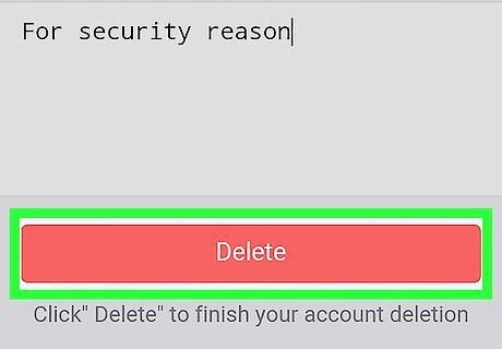 Scroll down and tap Delete Account. This option is under the "Security" heading at the bottom of your Account Security page.