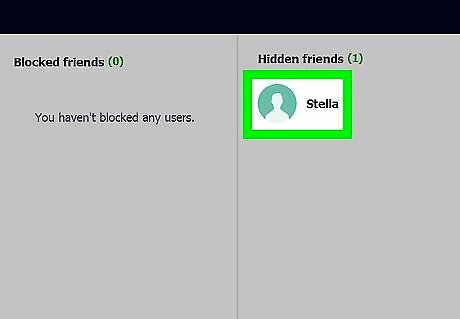 Click Friends. It’s on the left side of the window. Two sections will appear: Blocked Friends and Hidden Friends.