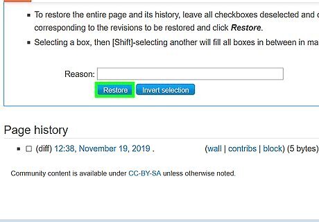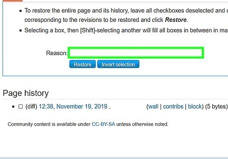 Type a reason for restoring the page. Use the text box next to "Reason" to type a reason for restoring the page.