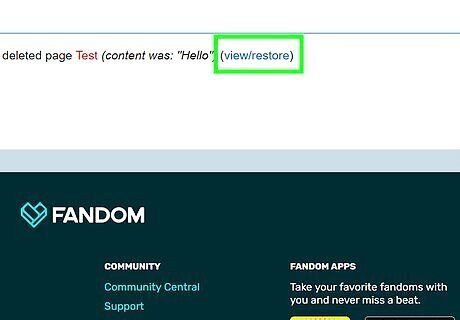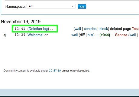 Click the deletion log. It's the text link in the text below the header that says "Search deleted pages". This displays a list of deleted pages. Alternatively , you can type the name of the page in the search bar and click Search.