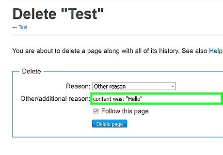 Type an addition reason for deletion (optional). If you want, you can use the space provided to type an additional or other reason for deleting the page.