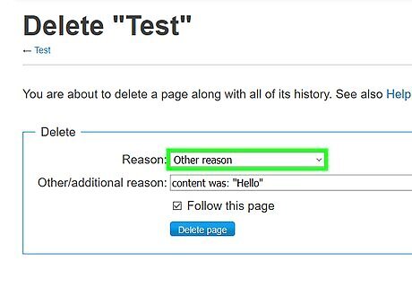 Select a reason for deletion. Use the drop-down next to "Reason" to select a reason for deleting the page.