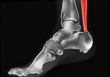 Understand the cause of the pain from an upper heel spur. If you have heel spurs on the upper portion of your heel, the pain you experience isn't actually directly caused by the spur. The bony outgrowth rarely causes pain on its own, but the tissue will build up calluses on them to help cushion the spurs. These will eventually cause wear and tear on the joints, which can cause the spurs to compress the neighboring tendons, nerves, or ligaments. This is what causes injury as well as tearing, pain, and swelling. The muscle that will likely be most affected with this type of heel spur is the Achilles tendon. The spurs will cause tenderness and pain at the back of the heel, where the Achilles tendon is, which is made worse when you push off on the ball of your foot.