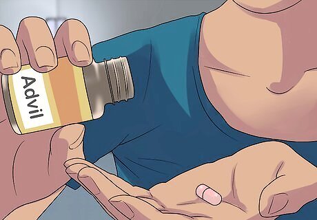 Take pain medication. Although it will not treat the overall cause of the heel spur, you can take over the counter medication to help you deal with the pain from your spur. You can take acetaminophen or aspirin to help relieve the pain you have while you rest your foot. You can also try medications such as nonsteroidal anti-inflammatory drugs (NSAIDs), which will also help with the swelling and inflammation. The two most popular NSAIDs are ibuprofen or naproxen. Common brands of NSAIDs are Advil, Motrin, and Aleve. Popular non anti-inflammatory drugs are Tylenol and Bayer.