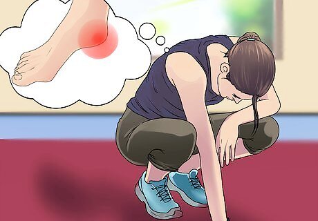 Rest your foot. When you first start experiencing pain in your heel, you should rest the area. To do this, you should cut out any activity that puts unnecessary stress on your heels and you plantar fascia. This means you need to stop any exercise or physical activity, such as running, long distance walking, or jumping, that might irritate the tissues in your foot. Resting for a few days usually is enough to make the pain go away, but if there is continual pain, other options might be necessary.